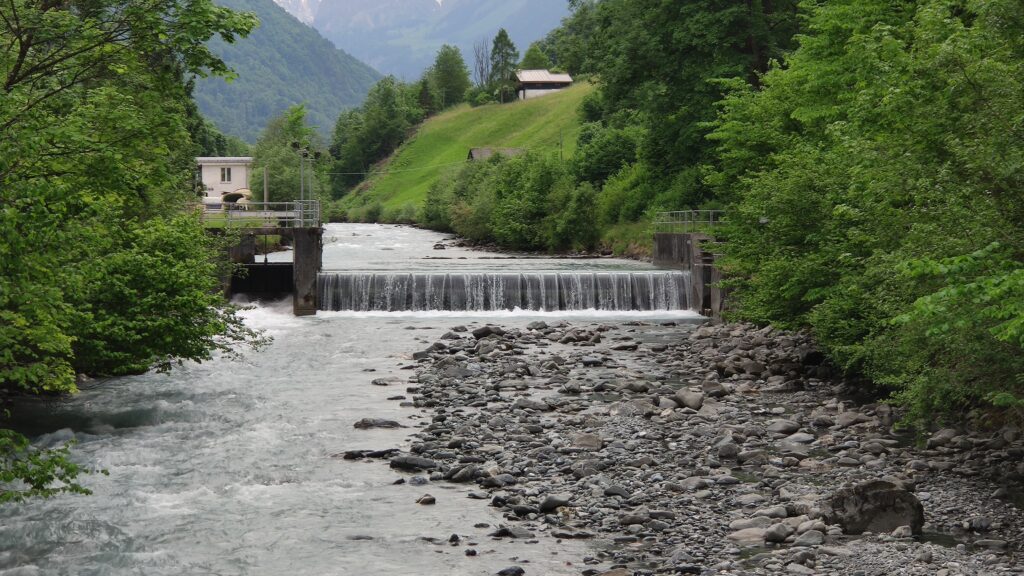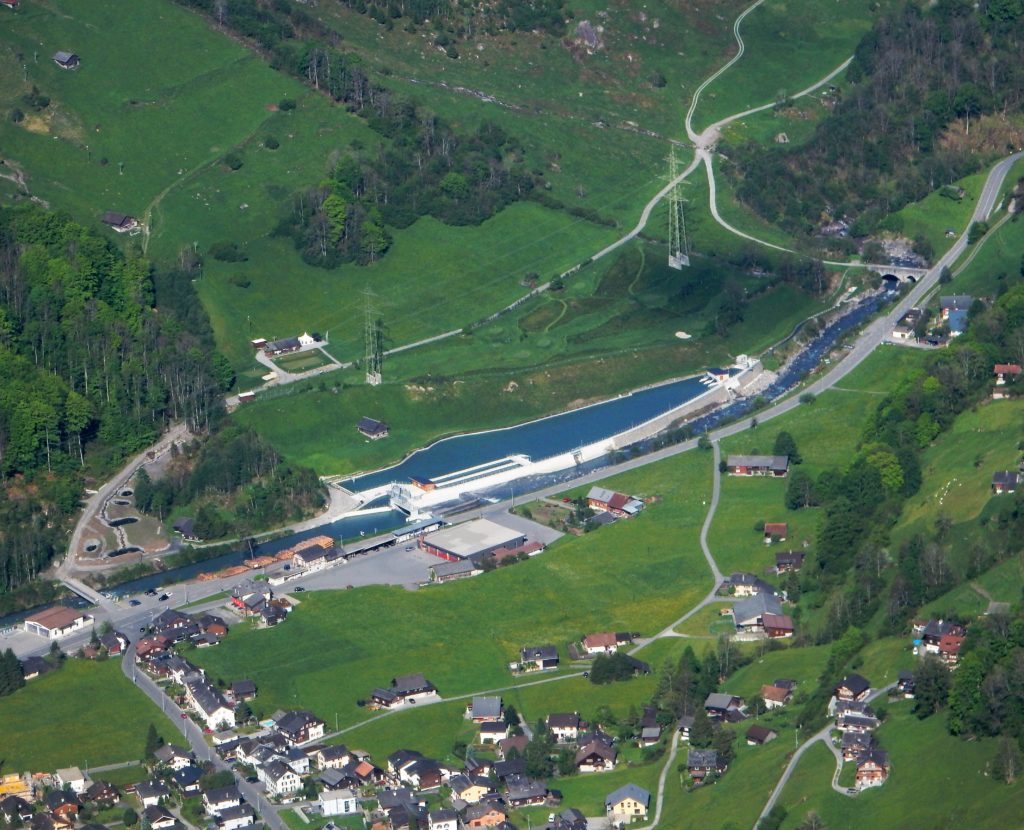 Die WESETA AG betreibt 2 Laufwasserkraftwerke in Engi GL. Das Kraftwerk Hinterdorf entnimmt das Wasser aus dem Sernf.