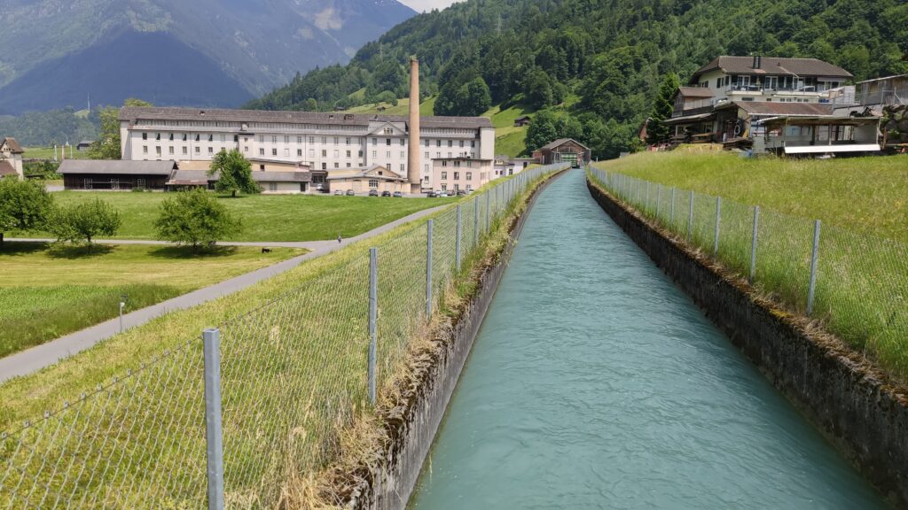 Das Kraftwerk liegt in Diesbach im historischen Legler-Areal, welches aus der Blütezeit der Glarner Textilindustrie stammt.